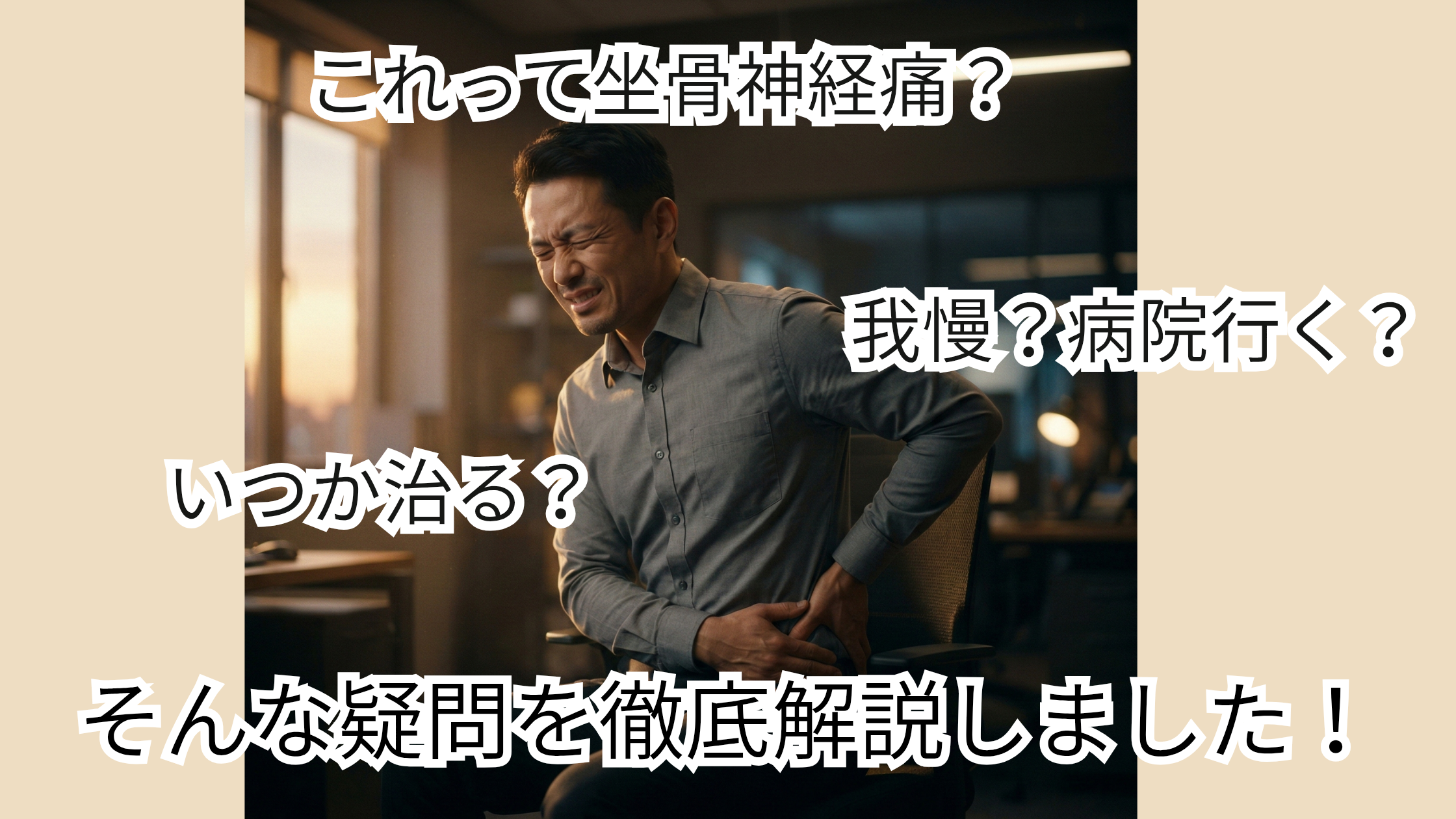 お尻や太ももふくらはぎなどの痛みやしびれ、重だるさ。座っていると症状が悪化する。などは坐骨神経が原因かもしれません。