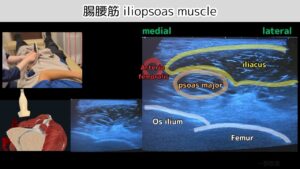 外側大腿皮神経を観察する際は、エコーで鼠径部を描出します。
