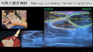 基本ビューからプローブを外側に移動させると、外側大腿皮神経が見えてきます。